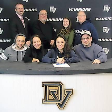 Milford. Delaware Valley High School senior softball player (shortstop) Brianna Silva has signed with Wilkes University-Division III. She plans on majoring in nursing. She is the daughter of James and Malissa Silva of Milford. Pictured in the front row (from left) are: James Silva (brother), Mrs. Malissa Silva, senior Brianna Silva and Mr. James Silva; back row: high school principal Dr. Brian Blaum, co-head coach Angelo Matz, co-head coach Chelsea Sweeney, and travel softball coach George Rollman. (Photo provided)